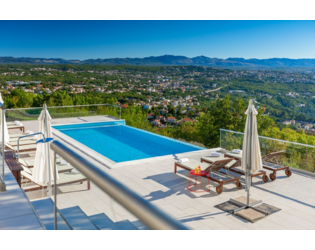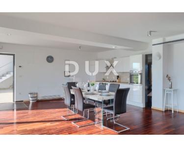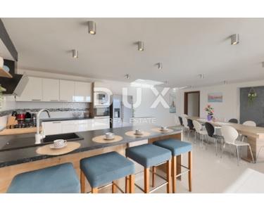 Bregi ist ein von viel Grün und wunderschöner Natur umgebenes Dorf oberhalb der Stadt Opatija, einem charmanten Touristenort mit einer reichen Geschichte. Die Siedlung liegt am Fuße des Berges Učka, von dem aus man einen unbezahlbaren Blick auf das Meer und die umliegenden Inseln Krk und Cres hat, weshalb es sich um einen sehr ruhigen und begehrten Ort handelt, der voller Schönheit ist Einfamilienhäuser mit Innenhöfen und eingezäunten Gärten. In nur zehn Autominuten erreichen Sie die berühmten Touristenattraktionen der Riviera von Opatija, die zu jeder Jahreszeit ein reichhaltiges gastronomisches Angebot sowie eine Reihe kulturell unterhaltsamer Veranstaltungen bieten, die ein qualitativ hochwertiges und zufriedenes Erlebnis ermöglichen Urlaub. In Opatija und Umgebung gibt es eine große Auswahl an Stränden, kristallklares Meer und verschiedene touristische Dienstleistungen. Wir haben eine schöne große Villa mit vier Wohneinheiten mit einer Gesamtfläche von 575 m2 zum Verkauf. Es wurde auf einem Grundstück von 2463 m2 in einem ruhigen und grünen Teil von Brega und oberhalb von Opatija gebaut. Diese voll ausgestattete, nach Süden ausgerichtete Villa befindet sich auf einem wunderschönen Hügel, der sich über der Kvarner Bucht erhebt. Das Interieur ist modern mit einem minimalistischen Ansatz dekoriert. Klare, gerade Sichtlinien und viel Glas unterstreichen das offene Konzept des Grundrisses. Es besteht aus 4 Etagen, die separate Einheiten sind, die durch Außentreppen verbunden sind. Im Erdgeschoss befindet sich eine Wohnung (105 m2) mit direktem Zugang zum Sonnendeck und Pool und besteht aus zwei Schlafzimmern, einem Badezimmer, einer Sauna und einem großen Wohnzimmer mit Esszimmer und einer voll ausgestatteten Küche. Im ersten Stock befindet sich eine Wohnung (110 m2) bestehend aus drei Schlafzimmern, zwei Bädern, einem Wohnzimmer, einem Esszimmer, einer voll ausgestatteten Küche und einer großen Terrasse. Im zweiten Stock befindet sich eine Wohnung (110 m2), bestehend aus einem Esszimmer, einem Wohnzimmer mit Küche, drei Schlafzimmern, einem Badezimmer und einem Abstellraum. Es gibt auch einen funktionalen großen Abstellraum vor der Wohnung. Auf der obersten Etage befindet sich ein Penthouse (250m2), verteilt auf zwei Ebenen (zweistöckig) mit vier Schlafzimmern, zwei Wohnzimmern, voll ausgestatteter Küche und Esszimmer, Arbeitszimmer, fünf Badezimmern, zwei Balkonen und einer Dachterrasse. Durch Wärmepumpen wird sehr effizient geheizt und gekühlt, die Bäder sind zusätzlich mit einer Fußbodenheizung ausgestattet. Im Garten hinter dem Haus gibt es einen großen Bereich mit sechs Parkplätzen und einer großen Garage von 46m2. Vor dem Haus befindet sich ein wunderschöner beheizter Infinity-Pool von 36 m2 und eine Liegewiese zum Genießen der Aussicht und zum Entspannen sowie ein Grill. Es befindet sich in ausgezeichneter und ruhiger Lage, umgeben von viel Grün mit absoluter Privatsphäre. Aufgrund seiner Unterkunft, Raumaufteilung und des Gartens mit Swimmingpool ist es eine hervorragende Immobilie, die sich zum Wohnen und als Investition in das bereits etablierte touristische Vermietungsgeschäft eignet.