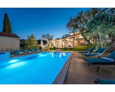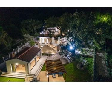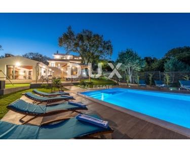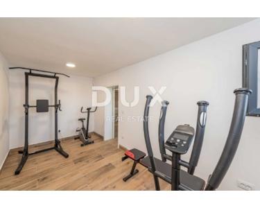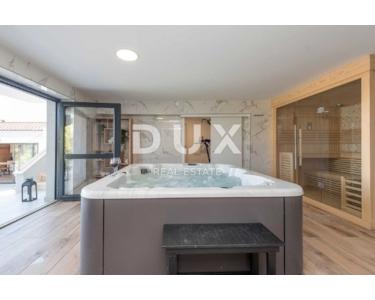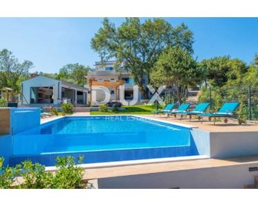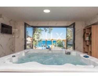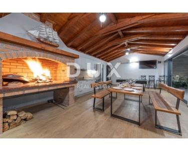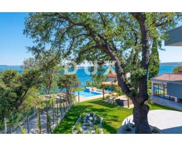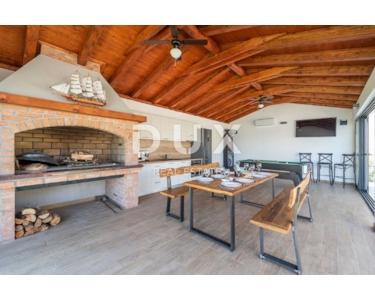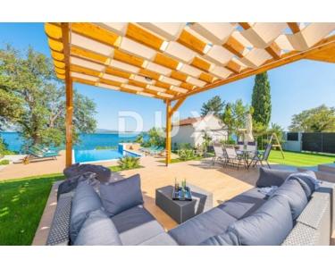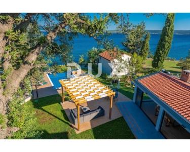 In einer besonderen Lage am Meer verkaufen wir eine Villa mit allen notwendigen Einrichtungen für einen Traumurlaub. Die Villa liegt in einer kleinen Bucht, in der Nähe von Posedarje. Das Anwesen selbst wird von einer Seitenstraße betreten, die zum Meer führt. Der umzäunte Hof hat einen Eingang von Norden und es gibt einen überdachten Parkplatz für drei Autos. Das Erdgeschoss dieses schönen Hauses verfügt über ein Wohn- und Esszimmer, eine Küche und zwei Schlafzimmer mit Badezimmern. An die gut ausgestattete Küche schließt sich ein Balkon mit Blick auf die Gärten und die türkisfarbene Adria an. Am Eingang führt eine Treppe in den ersten Stock, wo sich drei Schlafzimmer mit angeschlossenen Badezimmern und eine Bar-Lounge mit einem geräumigen Balkon befinden, der als privater Raum für Spaß und Entspannung dient. Vom Erdgeschoss gelangt man durch das Wohnzimmer auf den bereits erwähnten Balkon und den Garten, der liebevoll dekoriert und ausgestattet ist. Durch das Sonnendeck kommen wir am Pool zur Sommerküche, einer verglasten Taverne, die alles für die Zubereitung von Speisen, das Essen und die Unterhaltung mit verschiedenen Brettspielen enthält. Neben der Sommerküche gibt es auch einen Bereich für Kinderunterhaltung mit einem ausgestatteten Spielplatz. Erwähnenswert ist, dass sich der Wellnessbereich im Untergeschoss der Villa befindet. Neben Sauna, Whirlpool und Fitnessraum gibt es auch Nebenräume zum Waschen, Trocknen und Aufbewahren von Textilausrüstung. Hinter dem Haus befindet sich ein großer Abstellraum mit Toilette, um das ganze Haus, den Pool und den Garten zu pflegen. Am Pool, neben der überdachten Terrasse, gibt es einen Durchgang zum Strand, der genutzt werden kann. Aufgrund der Lage selbst ist der Strand nur vom Meer aus zu erreichen. Am Strand gibt es einen kleinen Pier, an dem ein Boot anlegen kann.
