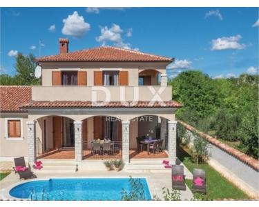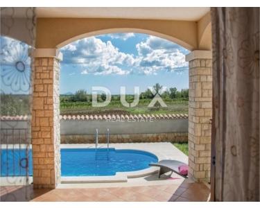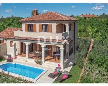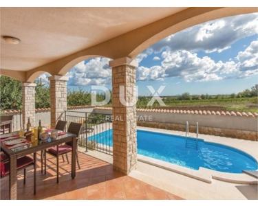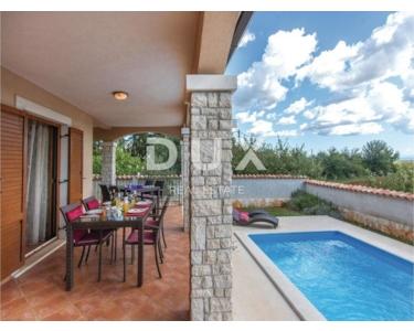 ISTRIEN, MARČANA - Villa mit Pool Villa zu verkaufen mit Pool, Wohnfläche 170m2, auf einem angelegten Garten von 400m2. Das Erdgeschoss verfügt über eine Eingangshalle, ein Badezimmer mit Dusche, eine Küche mit Esszimmer und ein Wohnzimmer mit offenem Zugang zu einer überdachten Terrasse, die direkt mit dem Pool verbunden ist. Im Obergeschoss befinden sich drei Schlafzimmer und zwei Badezimmer: eines mit Dusche und das andere mit Badewanne. Neben dem Haus befindet sich eine Garage und ein weiterer Stellplatz. Die Anlage ist mit einer Gaszentralheizung ausgestattet. Der ganze Garten ist mit einem automatischen Bewässerungssystem ausgestattet. Die Villa ist mit 4 Sternen kategorisiert und wird seit mehreren Jahren vermietet.