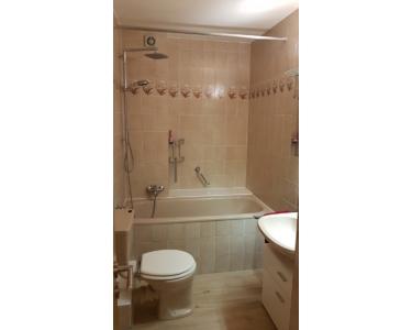 Die Warmwasseraufbereitung erfolgt über die Gaszentralheizung des Hauses.