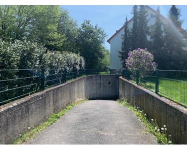 Die Tiefgarage erreicht man über die Zufahrt seitlich des Grundstückes.