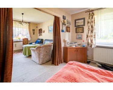 Das Wohnhaus befindet sich in guter Wohnlage, auf einem insgesamt 1.445 m² großen Grundstück. Der westliche Teil des Grundstückes ermöglicht gegebenenfalls die Abtrennung eines separaten Baugrundstückes oder eine weitere Bebauung (es bedarf einer Bauvoranfrage bzw. der Zustimmung durch das zuständige Bauamt). Das teilunterkellerte Haus wurde Mitte der 60er-Jahre massiv erbaut und im Jahr 2002 durch einen Anbau umfassend erweitert. Über zwei Etagen verteilen sich mit einer Wohn- und Nutzfläche von ca. 135 m² insgesamt 5 Zimmer und 2 Bäder. Das sanierungsbedürftige Haupthaus wird im Erdgeschoss von dem Eigentümer selbst bewohnt. Der Anbau sowie die Räume (2 Schlafzimmer u. Abstellraum) im Obergeschoss des Haupthauses sind fest vermietet. Die monatliche Kaltmiete beträgt aktuell 394,00 Euro. Das Gebäude wird mit einer Ölzentralheizung versorgt. Zum Objekt gehört ferner eine Garage nebst Abstellraum. Stellplätze sind ausreichend vorhanden.