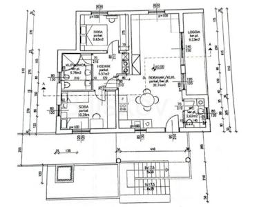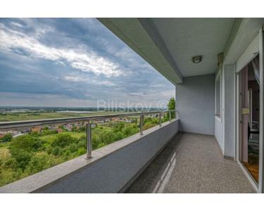 Im ersten Stock befindet sich eine Dreizimmerwohnung bestehend aus einem grossen Wohnzimmer mit Zugang zu einem Balkon mit Panoramablick, Küche und Esszimmer, Gäste-WC, Flur, zwei Schlafzimmern und einem grossen Badezimmer.