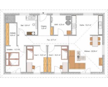 Der Grundriss kann kostenfrei und individuell nach Ihren Wünschen geplant werden, sämtliche TRAGENDE !!! und NICHTTRAGENDE !!! Innenwände können ohne Aufpreis abgeändert werden.