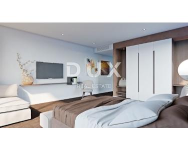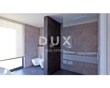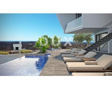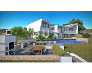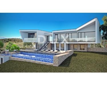 Im nordwestlichen Teil Istriens, an den Hügeln der oberen Bujština, liegt die mittelalterliche Stadt Momjan. In der Antike dominant, gilt sie heute als Weinperle Istriens; ein wahres Mekka für Feinschmecker und Weinliebhaber, da sich in der Nähe einige der besten Tavernen und Weingüter ganz Istriens befinden. Eingebettet in die malerische Natur des grünen Königreichs der Weinberge und Olivenhaine, die in die malerischen Hügel eingewoben sind, oberhalb des Tals des Bachs Argilla, leben die Stadt Momjan und ihre freundlichen Einwohner die Tradition Istriens auf Schritt und Tritt, bewahrt in Familientavernen, Weinkellern und Überresten der reichen Geschichte der Region Bujština. Perfekte Harmonie, fast unwirklich, wie aus einem Märchen. Umgeben von Weinbergen und Olivenhainen steht eine spektakuläre Villa in außergewöhnlicher Lage zum Verkauf. Darüber hinaus ist die Lage des Anwesens faszinierend: Die besten Weingüter, Craft-Brauereien, Olivenölproduzenten und renommierten Restaurants sind fußläufig erreichbar. Jedes Detail dieses eleganten Anwesens wurde sorgfältig durchdacht, und das Ergebnis ist ein erstklassiges Anwesen, ein Paradies für wahre Genießer. Geometrische Formen verleihen dem Gebäude einen besonderen, manchmal fast illusionären optischen Charakter. Die Kombination aus Stein und Glas schafft ein elegantes, luxuriöses und äußerst modernes Design, das sich perfekt in die typisch istrische Natur des Ortes einfügt. Mit seinem modernen Außendesign und dem Innenkonzept, das einen hohen Wohnstandard gewährleistet, bietet es außergewöhnlichen Komfort und Funktionalität sowie absolute Privatsphäre. Die großzügige Wohnfläche von 391,14 m² erstreckt sich über zwei Etagen und strahlt Licht aus, spiegelt die Klarheit der Linien wider und schafft ein perfektes Gleichgewicht zwischen Außen- und Innenbereich. Der großzügige, offen gestaltete Wohnbereich befindet sich im Obergeschoss und wird durch ein elegantes Esszimmer und eine erstklassige Küche ergänzt. Drei Schlafzimmer mit eigenem Bad, eine Speisekammer und ein Gäste-WC runden das Obergeschoss ab. Alle Zimmer haben Zugang zu Balkonen. Das Erdgeschoss beherbergt ein Schlafzimmer mit eigenem Ankleidezimmer und Bad, einen Fitnessraum mit professionellen Fitnessgeräten und einen Ruhebereich mit angeschlossener Sauna, einen Technikraum und eine Waschküche. Neben der Funktionalität wurde bei der äußerst professionellen Planung besonderes Augenmerk auf die Abgrenzung zwischen Innen- und Außenbereich gelegt. Durch das kaskadenartige Gelände wurde eine ideale Verbindung zwischen Garten und Villa geschaffen. Im Erdgeschoss befinden sich zwei beheizte, 70 m² große Überlaufpools mit Sonnenterrasse, die mit der Sommerküche und dem Grillbereich verbunden sind. Die oberste Gartenebene umfasst eine 43,13 m² große Garage und zwei Parkplätze. Mit dem Kauf einer Immobilie in der Bauphase gestalten Sie aktiv Ihre Traumimmobilie mit. Durch die Möglichkeit, die Inneneinrichtung zu verändern, die Gartengestaltung anzupassen und die Farbe der Fassade zu wählen, haben Sie die Möglichkeit, Ihren ganz persönlichen Wohnraum zu gestalten. Nutzen Sie die Gelegenheit, Ihre Persönlichkeit und Ihren Stil in jeden Aspekt Ihres neuen Zuhauses einzubringen und so ein Refugium zu schaffen, das Ihre Persönlichkeit widerspiegelt. Der angegebene Preis der Immobilie bezieht sich auf den endgültigen Ausbauzustand ohne Möbel, sodass Sie die Immobilie nach Ihren Wünschen und Vorlieben dekorieren können. Der Verkäufer der Immobilie ist eine juristische Person und der angegebene Preis enthält die Mehrwertsteuer.
