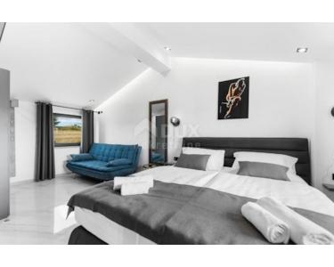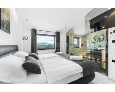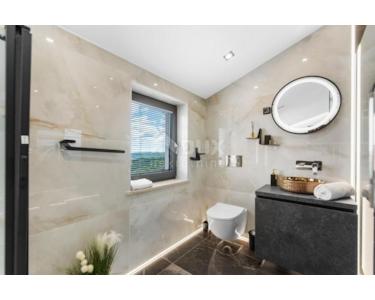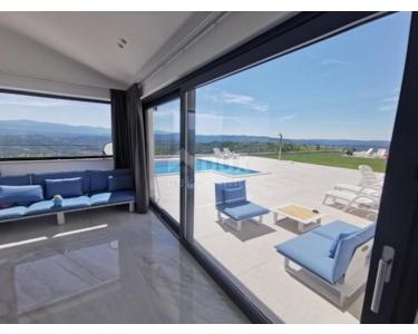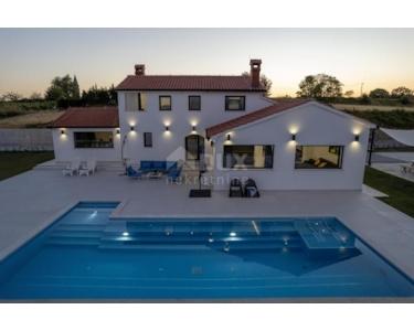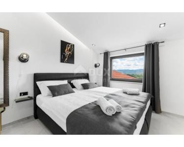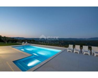 Buzet, eine kleine Stadt auf einem samtigen Hügel, umgeben von mächtigen Steinmauern und gewürzt mit göttlicher autochthoner istrischer Gastronomie. Sie ist weithin als Stadt der Trüffel bekannt, deren Jagdreviere direkt in den Wäldern des Tals des Flusses Mirna liegen. Eines der wertvollsten Merkmale dieser Region ist sicherlich ihre unberührte Natur. Wunderschöne Naturlandschaften, die Küsten- und Berglandschaft mit zahlreichen Hügeln und dem Tal des Flusses Mirna verschmelzen, bieten einzigartige Ausblicke. Das Gebiet von Buzeština liegt im nördlichsten Teil Istriens im Landesinneren, im Gebiet zwischen drei großen Stadtzentren: Rijeka, Triest und Pula. Das Gebiet ist sehr vielfältig, von 10 m bis über 1000 m Seehöhe. Buzet umfasst zusammen mit der Umgebung, bekannt als Buzeština, eine Fläche von 165 km2. In der Nähe von Buzet steht auf einer Lichtung mit schöner Aussicht eine Villa mit großem Garten zum Verkauf. Die Villa besteht aus Erdgeschoss und Obergeschoss. Im Erdgeschoss gibt es sogar zwei Wohnzimmer mit wunderschönem Blick auf die Natur und den Pool, Küche und Esszimmer, Toilette und Fitnessraum. Im Obergeschoss befinden sich 3 große Schlafzimmer mit Badezimmern. Die Villa verfügt außerdem über eine Ladestation für Elektroautos, Fußbodenheizung und -kühlung. Das Wohnzimmer hat einen schönen Ausgang zur Terrasse und zum Hof. Im komplett umzäunten Hof gibt es außerdem einen überdachten Grill mit großem Tisch und Whirlpool. Ideale Immobilie für Touristenvermietung oder luxuriöses Familienleben.