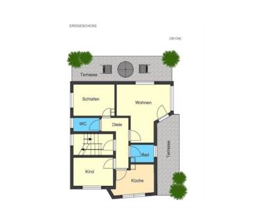 Das Erdgeschoss, mit ca. 83 m² Wohnfläche, bietet einen hellen großzügigen Wohnbereich mit Zugang zu den beiden Terrassen, zwei Wohn-/Schlafräume, eine Küche, ein Tageslichtbad sowie ein Gäste-WC.
