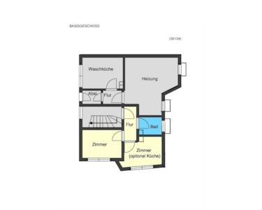 Im Basisgeschoss befinden sich zwei Zimmer sowie ein Tageslichtbad, mit einer Wohnfläche von ca. 35 m².
