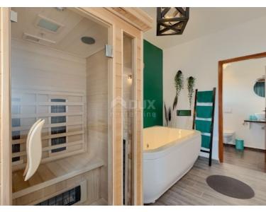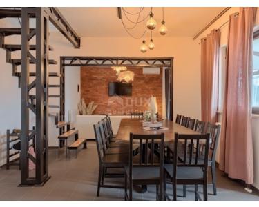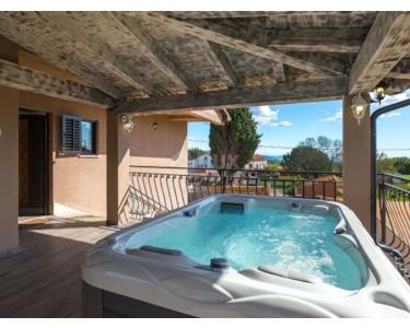 ISTRIEN, BARBAN - In unmittelbarer Nähe von Barban befindet sich dieses gemütliche und warme Haus mit Swimmingpool. In einer kleinen und ruhigen malerischen Siedlung, ideal für das Familienleben oder einen Urlaub, befindet sich dieses warme Haus mit insgesamt 250 m2 Wohnfläche Raum, der auf zwei Etagen aufgeteilt ist. So gibt es im Erdgeschoss der Villa eine Eingangshalle, die uns weiter in den Bereich des täglichen Lebens führt, wo sich die Küche mit Esszimmer und das Wohnzimmer befinden, von dem aus man einen direkten Ausgang in den Außenbereich hat Terrasse und Garten mit Blick auf den Pool. Im Erdgeschoss finden wir dann 3 separate Schlafzimmer und 2 Badezimmer sowie ein separates Gäste-WC. Über eine Innentreppe gelangt man in die erste Etage, wo sich 3 weitere Schlafzimmer und 2 Badezimmer sowie ein kleinerer Wellnessbereich mit Sauna und Pilates-Trainingsbereich befinden. Was das Obergeschoss zusätzlich ziert, ist eine größere überdachte Terrasse mit Whirlpool, die den Blick in die Landschaft freigibt. Das Haus ist mit einer zentralen Pelletheizung und Klimaanlagen auf jeder Etage ausgestattet. Der 600 m² große Garten ist ideal für Unterhaltung und Entspannung mit Familie und Freunden. Im zentralen Teil befinden sich ein Swimmingpool und eine Liegewiese. Der Hof ist komplett eingezäunt und sicher, mit natürlichem Grün geschmückt und bietet ausreichend Privatsphäre. Im Garten gibt es auch einen Parkplatz für 2 bis 3 Autos. Es handelt sich um eine ideale Immobilie am Rande einer kleinen Siedlung, für alle, die eine sichere und ruhige Ecke für ihre Familie oder als Investitionsmöglichkeit für touristische Zwecke suchen. Der Besitz der Immobilie ist völlig in Ordnung.