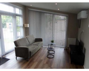 Grundstück 128 Wunderschön gelegenes Chalet mit direkter Anbindung zum Angelsee, Minigolfanlage und 18 Loch Golfplatz. Das Chalet ist für 4 Personen geeignet. Es verfügt über einen Wohnbereich, Küche, 2 Schlafzimmer und Badezimmer. Es ist winterfest und somit das ganze Jahr über nutzbar.