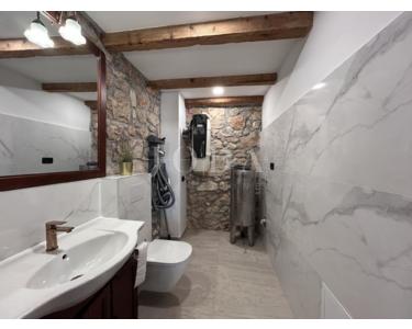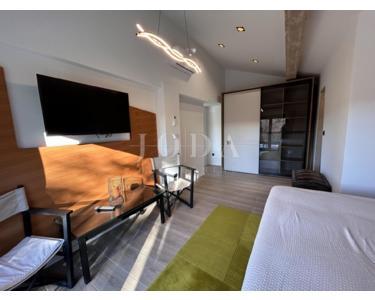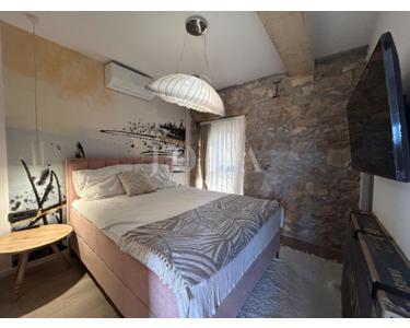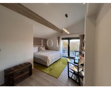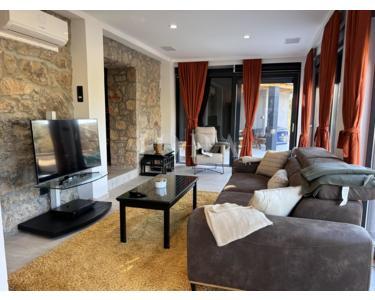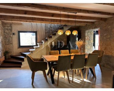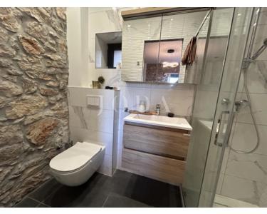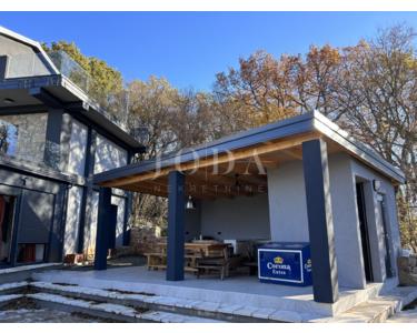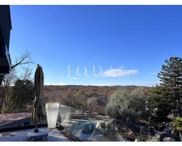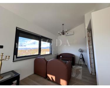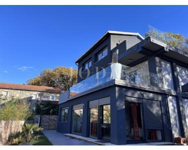 Ein Haus zum Verkauf in ruhiger Lage am Rande einer Grünzone. Das Haus mit einer Fläche von 226,19 m2 besteht aus einem Erdgeschoss und zwei Etagen. Im Erdgeschoss gibt es eine Küche mit Esszimmer (32,09 m2), ein großes Wohnzimmer von 19 m2, ein Badezimmer und eine Sauna. Im ersten Stock befinden sich zwei Schlafzimmer mit jeweils eigenem Bad, eine große Terrasse von 27,47 m2 mit freiem Blick ins Grüne. Die zweite Etage besteht wie die erste aus zwei Schlafzimmern, zwei Badezimmern und einem Vorraum mit Zugang zur Terrasse. Hochwertige Materialien; Bodenbeläge - Parkett und erstklassige Keramik, Fußbodenheizung über Wärmepumpe sowie Klimaanlagen. Zum Meer sind es 3 km, zur Stadt Krk 15 km und zur nahegelegenen Stadt Malinska 10 km. Das Haus verfügt über einen 700 m2 großen Garten mit Swimmingpool und Liegewiese. Es gibt genügend Platz, um mindestens 3 Autos zu parken. Diese Villa ist eine ideale Gelegenheit für zukünftige Eigentümer, Naturliebhaber oder kann zur touristischen Vermietung gekauft werden.