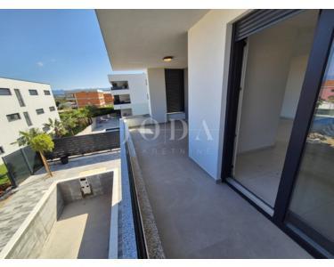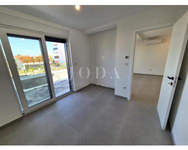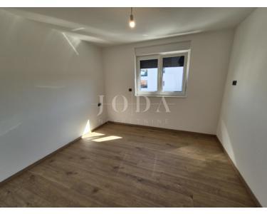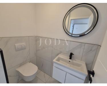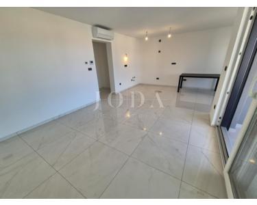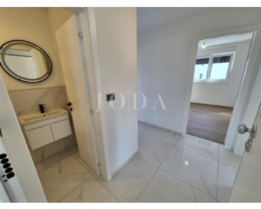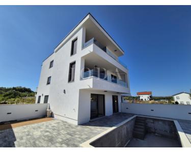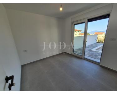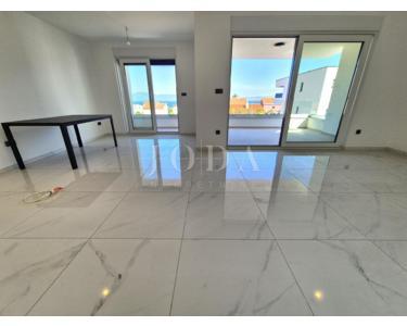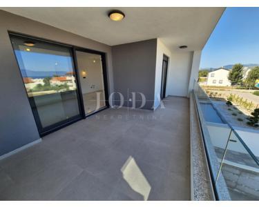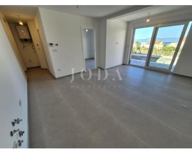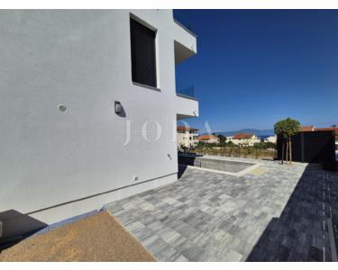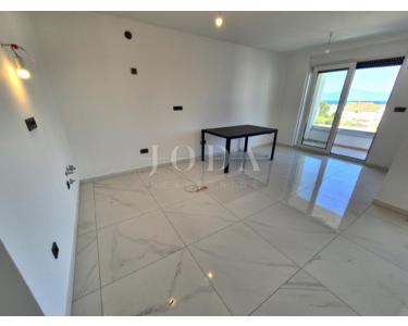Die Wohnung besteht aus zwei Teilen, der erste Stock ist 77,19 m2 groß, besteht aus zwei Schlafzimmern, einem Badezimmer, einer Toilette, einem offenen Raum, der Wohnzimmer, Küche und Esszimmer vereint, und einem großen Balkon mit Meerblick. Der zweite Teil der Wohnung befindet sich im Erdgeschoss, verfügt über einen separaten Eingang und ist in der Natur eine separate Wohneinheit. Die Erdgeschosswohnung von 43,70 m2, besteht aus einem Schlafzimmer, Badezimmer, Küche mit Essbereich und einem Garten in dem sich ein 24 m2 großer Swimmingpool befindet.