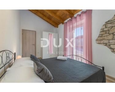 Am Rande eines charmanten Dorfes gelegen, nur 16 km von der Stadt Poreč und 12 km von wunderschönen Stränden entfernt, stellt dieses außergewöhnliche Anwesen eine einzigartige Gelegenheit dar. Das Haus wurde im Jahr 2020 komplett renoviert, strahlt Eleganz aus und bietet eine perfekte Kombination aus modernem Komfort und traditionellem istrischem Charme. Im Erdgeschoss gibt es ein geräumiges Wohnzimmer mit Küche und Esszimmer, sowie ein Badezimmer und einen Abstellraum. Die Innentreppe führt in den ersten Stock, wo sich drei Schlafzimmer befinden. Das Hauptschlafzimmer verfügt über ein eigenes Badezimmer, während sich die restlichen beiden Schlafzimmer ein Badezimmer teilen. Vor der Villa befindet sich eine großzügige überdachte Terrasse, von der Sie den Blick ins Grüne und auf den Pool genießen können. Neben dem Pool gibt es eine Liegewiese und eine überdachte Sommerküche mit Kamin, die im Jahr 2022 unter Beibehaltung des authentischen istrischen Flairs erbaut wurde. Das Besondere an dieser Villa ist der 9.000 m² große Garten, der bezaubernde Wege für ruhige Spaziergänge und Momente der Besinnung bietet. Hinter der Villa befindet sich ein weiteres autochthones istrisches Steinhaus, das auf eine vollständige Renovierung wartet, um ein integraler Bestandteil dieses außergewöhnlichen Anwesens zu werden. Mit Wohnzimmer, Küche, Esszimmer, Bad sowie drei Schlafzimmern und zwei Tavernen im Erdgeschoss wartet es darauf, dass sein neuer Besitzer seine eigene Geschichte einbringt. Der umzäunte Hof umfasst zwei weitere legalisierte Gebäude, von denen eines als überdachter Parkplatz dient und das andere derzeit in eine charmante Wohnung umgewandelt wird. Darüber hinaus bietet der weitläufige Garten genügend Platz für den Anbau eines Swimmingpools, sodass zukünftige Eigentümer den Inhalt der Immobilie nach der Renovierung erweitern können. Dieser idyllische Ort bietet jede Menge Komfort und zahlreiche Annehmlichkeiten sind nur wenige Autominuten entfernt. Erkunden Sie die nahegelegenen Geschäfte, Schulen, Kindergärten, Restaurants, Postämter und Apotheken und genießen Sie die Schönheit der Natur bei einfachen Spaziergängen in der Umgebung. Umgeben von Ferienvillen strahlt die Gegend eine friedliche Atmosphäre aus, was sie zu einer begehrten Investition für zukünftige Eigentümer macht, die eine einzigartige Kombination aus persönlichem Urlaub und lukrativen touristischen Vermietungsmöglichkeiten suchen. Es ist eine ideale Gelegenheit für alle, die ihr eigenes „Ecke vom Paradies“ suchen, sowie für alle, die Immobilien zur Investition suchen.