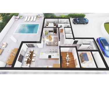 Eine im Bau befindliche Villa von 278 m² steht zum Verkauf, umgeben von viel Grün, in ruhiger Lage in der Stadt Pag. Diese Villa bietet die perfekte Kombination aus Komfort, Privatsphäre und Nähe zu allen wichtigen Annehmlichkeiten. Es liegt direkt an der Hauptstraße, nur 300 m vom Stadtzentrum und 350 m vom Meer entfernt. Die Villa befindet sich auf einem angelegten und eingezäunten Grundstück von 594 m². Von der Vorderseite der Villa aus können Sie den schönen 28 m² großen Pool, eine großzügige Terrasse zum Sonnenbaden und Entspannen sowie einen Grillplatz genießen. Hinter dem Haus befinden sich vier Parkplätze mit Platz zum Laden von Elektroautos. Die Villa hat zwei Etagen und besteht aus einem Erdgeschoss, einem ersten Stock und einem Flachdach. Der Haupteingang zum Haus führt direkt vom Parkplatz. Im Erdgeschoss gibt es eine Küche mit Esszimmer und Wohnzimmer, ein geräumiges Zimmer mit eigenem Bad, einen Abstellraum, eine separate Toilette, einen Raum für eine Sauna und einen Fitnessraum sowie einen externen Abstellraum mit separatem Eingang. Das Wohnzimmer und das Schlafzimmer haben Zugang zu einer großzügigen Terrasse und einem Resort mit Swimmingpool. Eine Innentreppe führt in den ersten Stock, wo sich drei geräumige Zimmer mit eigenem Bad befinden. Einer der Räume ist der Hauptraum mit einer Fläche von 30 m², der je nach Kundenwunsch verschiedene Möglichkeiten bietet, wie zum Beispiel den Einbau einer Indoor-Massagewanne oder eines begehbaren Kleiderschranks. Alle Zimmer im ersten Stock haben Zugang zu einer großzügigen Gemeinschaftsterrasse. Auf der Terrasse ist Platz für einen Außenwhirlpool. Außerdem gibt es im ersten Stock eine Waschküche mit Abstellraum und einen Technikraum. Die Heizung und Kühlung der Villa erfolgt über sogenannte mit einer Multi-Split-Klimaanlage, die aus einer Außen- und mehreren Inneneinheiten besteht, die über das gesamte Gelände der Villa verteilt sind. Im Wohnzimmer ist ein Kamin vorhanden, der die Installation eines Kamins ermöglicht und die Atmosphäre in den kälteren Wintermonaten vervollständigt. Die Ausrichtung der Villa ist Südwesten. Die Villa befindet sich derzeit im Bau, sodass Sie die Veredelungsmaterialien nach Ihren eigenen Wünschen und der ästhetischen Dekoration des Raums auswählen können. Der Preis bezieht sich auf den aktuellen Bauzustand! Der Eigentümer ist im Einvernehmen mit dem Käufer bereit, bei der Organisation des weiteren Baus bis zur endgültigen schlüsselfertigen Phase behilflich zu sein. Lassen Sie sich diese außergewöhnliche Gelegenheit nicht entgehen, eine moderne Villa mit Pool in Pag zu besitzen. 1/1 Eigentum, keine Belastungen.