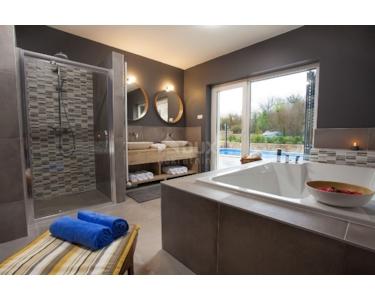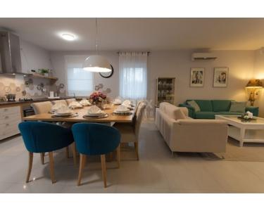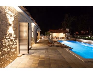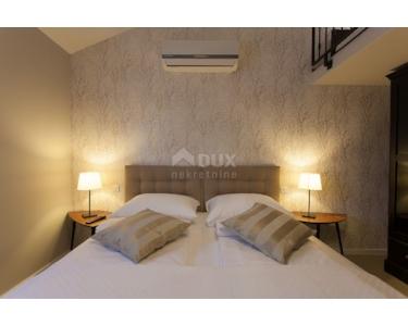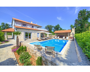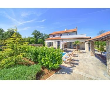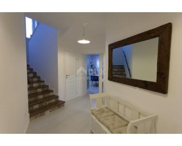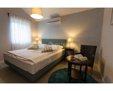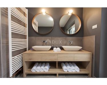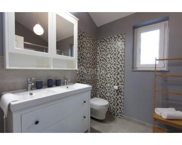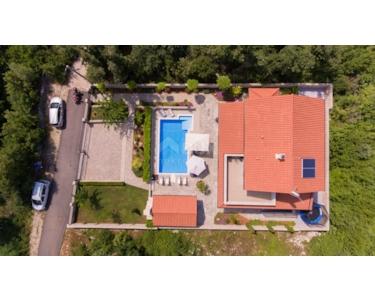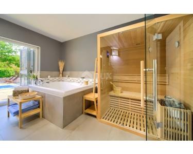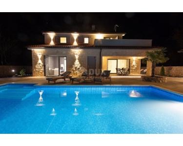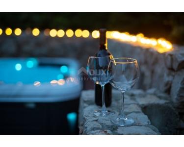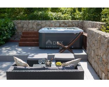 Freistehende Villa mit einer Größe von 185 m2, rustikalem Äußeren und modernem Interieur mit einem schönen großen Garten und Swimmingpool, in ruhiger Lage am äußersten Rand der Grünzone gelegen , nur 5 km vom Meer entfernt. Es besteht aus einem Erdgeschoss mit einem Eingangsbereich, der zu einem Mini-Wellnessbereich (Sauna und Whirlpool) führt, einem Schlafzimmer, einem offenen Bereich mit Küche, Esszimmer und Wohnzimmer mit Zugang zur Terrasse sowie einer Waschküche und ein Heizraum. Im Obergeschoss befinden sich drei Schlafzimmer und zwei Badezimmer. Sie ist komplett mit allem ausgestattet, was eine Villa braucht. Es verfügt über hochwertige Keramik- und Sanitärartikel, PVC-Zimmerarbeiten, wird mit einer Wärmepumpe (8 Gebläsekonvektoren) beheizt/gekühlt und verfügt über Sonnenkollektoren für Warmwasser. Der Strom im Haus ist mit 22 KW vermietet, es verfügt über Strom zum Laden von Elektrofahrzeugen, einen internen Kamin, der mit einer Wärmepumpe zum Heizen des gesamten Hauses verbunden ist, die Beheizung des Außenpools, die Steuerung der Heizung/Kühlung und des Pools über einen mobile Anwendung, Außengrill, Bewässerung, komplette Beleuchtung von Haus und Garten, Videoüberwachung, Alarmanlage und Zisterne zum Sammeln von Wasser von ca. 50 m3. Der Hof ist 555 m2 groß und verfügt über einen Swimmingpool (32 m2), um den sich eine Liegewiese, ein Whirlpool, eine überdachte Terrasse mit Sommerküche und Grill sowie 3 Parkplätze befinden. Das Haus wird komplett möbliert und ausgestattet verkauft. Es ist für die Touristenvermietung kategorisiert und hat 5 Sterne. Auf der Ostseite der Insel Krk liegt die Gemeinde Dobrinj mit dem gleichnamigen Zentrum. Dobrinj liegt auf einem etwa 200 Meter hohen Hügel und ist eine der mittelalterlichen Burgen, die in der Vergangenheit Zentren der Alphabetisierung waren. Dobrinjština war jahrhundertelang eine äußerst landwirtschaftlich geprägte Region. Auch Tierhaltung und Olivenanbau sowie die Ausbeutung der Waldressourcen waren vertreten. Der Ort ist auch für seine farbenfrohen Trachten, Folkloreveranstaltungen, die Sopela-Schule (Krks Blasinstrument) und die traditionelle lokale Küche bekannt. In diesem Inselzentrum dominieren autochthone Steinhäuser und enge Steingassen, die an die Vergangenheit erinnern. Nicht weit von Dobrinje entfernt befindet sich die Höhle Biserujka, die durch ihre Schönheit und interessante Felsformen begeistert. Es ist die einzige Höhle auf der Insel, von der es mehr als 50 gibt, die für den Empfang von Besuchern konzipiert ist. Der Legende nach wurde die Höhle nach dem darin gefundenen Schatz, der einheimischen Piraten gehörte, Biserujka (Perle) genannt.