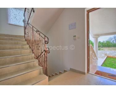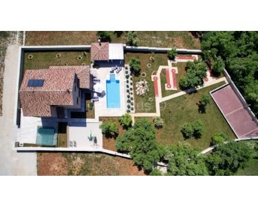 Svetvicenat, neues Haus 294m2 mit Pool und grossem Garten von 1900m2. Das Haus liegt am Rande eines kleinen Dorfes, wo es einen schönen Blick auf die natürliche Vegetation hat und Privatsphäre  zum  Entspannen bietet. Die Villa besteht aus einem Untergeschoss, Erdgeschoss und ersten Stock. Das Untergeschoss besteht aus einem multifunktionalen Raum, Fitness und andere sportliche Aktivitäten und einem Heizungsraum, der für die Zentralheizung sorgt. Das Erdgeschoss besteht aus Flur, Küche, Esszimmer, Wohnzimmer, einem Schlafzimmer mit eigenem Bad und ein Gäste-WC, Flur für Waschmaschine und Trockner. Die erste Etage besteht aus drei Schlafzimmern, und jedes Zimmer hat einen Vorraum und ein Badezimmer. Eines dieser Zimmer hat Ausgang zu einer Lodge von 7m2 mit Blick auf den Pool und das Meer in der Ferne. Im Garten des Hauses befinden sich Kinderspielplatz Multifunktionsgrösse 7, das aus Schaukeln, Rutschen, Klettergerüsten und einigen anderen Inhalte wie Minigolf-6 Löchern, Multifunktionsplatz (16x8m) Fussball, Basketball, Volleyball, Jacuzzi 2,15 x 2,15 m für 5 + 1 Personen (überdacht) und Teils Rasenbewässerung.