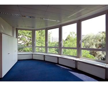 Die lichtdurchfluteten Räumlichkeiten verfügen über Teppich als Bodenbelag. Die Verkabelung erfolgt über einen Hohlraumboden, zudem verfügen die Flächen über einen außenliegenden elektrischen Sonnenschutz, Teilklimatisiereung und eine Teeküche. Eine Kantine ist ebenfalls im Objekt vorhanden.