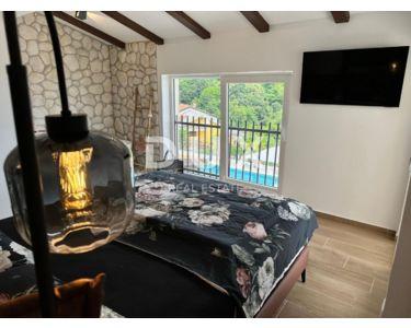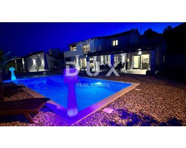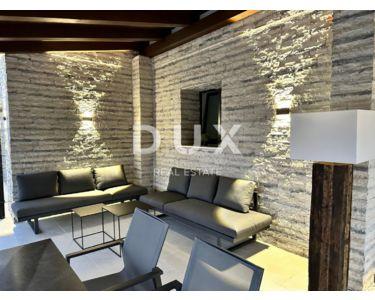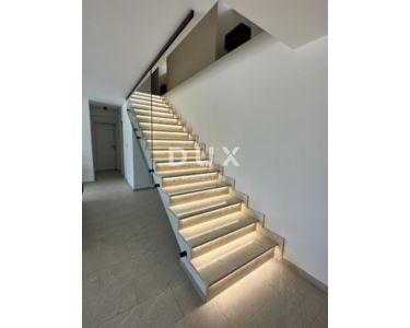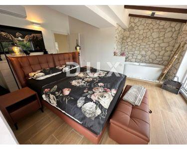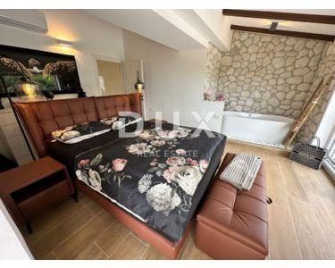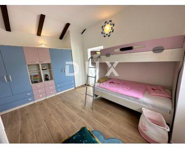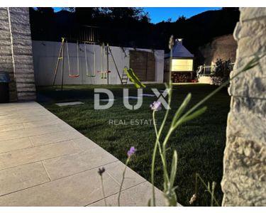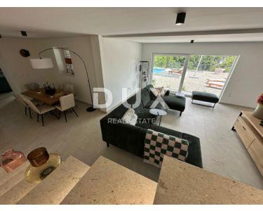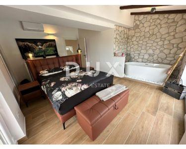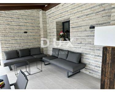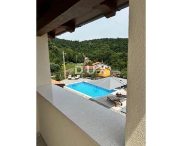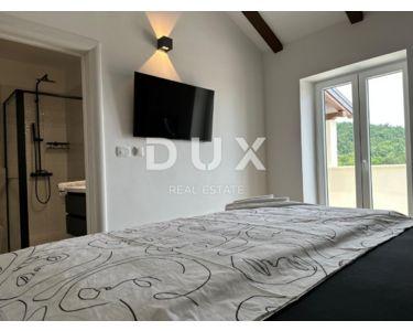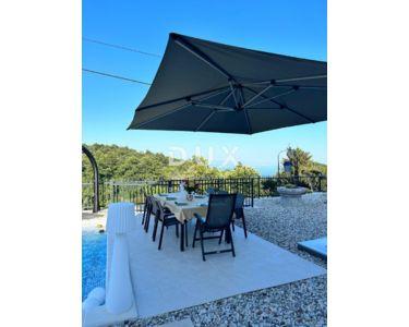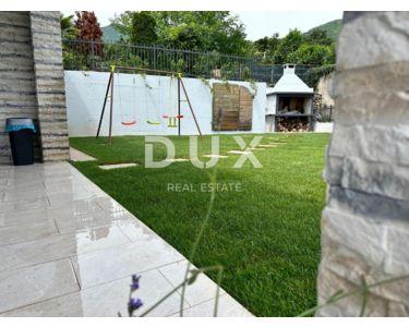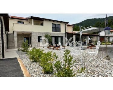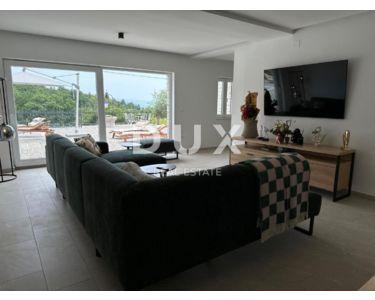 Wir bieten Ihnen die einmalige Gelegenheit, Eigentümer dieser wunderschönen Villa zu werden, die in einer abgeschiedenen Gegend in der Nähe von Opatija liegt. Dieses hochwertig gebaute Haus von 328 m² mit einem wunderschön angelegten Garten von 870 m² begeistert mit seinem Luxus und dem spektakulären Meerblick. Im Erdgeschoss gibt es ein geräumiges offenes Wohn- und Esszimmer, eine moderne Küche, ein Schlafzimmer mit Bad und eine Gästetoilette. Von der Küche und dem Wohnzimmer aus können Sie auf eine großzügige überdachte Terrasse (42 m2) oder in den Garten gehen, wo es einen Holzkamin gibt, der an kälteren Tagen eine besondere Atmosphäre und Wärme schafft. Im Obergeschoss befinden sich drei geräumige Schlafzimmer, jedes mit eigenem Bad und privaten Balkonen (32 m2), die einen unglaublichen freien Blick auf das Meer und die umliegende Natur bieten. Der Genuss dieser Villa beschränkt sich nicht nur auf die Sommermonate, denn die Heizung und Kühlung ist vollständig über WLAN regulierbar und die Fußbodenheizung und der Pelletkamin sorgen auch in kälteren Jahreszeiten für zusätzlichen Komfort. Die Villa verfügt außerdem über 3 Solarpaneele mit einem 400-Liter-Boiler zur Warmwasserbereitung. Der Außenbereich ist himmlisch – ein beheiztes Schwimmbad (8x4) mit automatischem Chemikalienspender, ein Kinderpark mit Unterhaltung für die Kleinsten und ein Grill, um gastronomische Köstlichkeiten im Freien zu genießen. Der Garten strahlt mediterrane Pflanzen und Rasenflächen aus und wird mit einem intelligenten Bewässerungssystem gepflegt. Dieses Haus liegt nur 6,5 km vom Strand Ičići entfernt, eine einfache 10-minütige Fahrt, und liegt in einer abgelegenen Gegend, umgeben vom Grün von Učka und einer wunderschönen Aussicht auf das Meer. Frieden garantiert. Diese wunderschöne Villa ist eine Kombination aus elegantem und rustikalem Interieur im mediterranen Stil und bietet Ihnen das ultimative Erlebnis eines Aufenthalts in einer einzigartigen Umgebung. Eine äußerst hochwertige Immobilie, die als solche auf dem Markt selten ist.