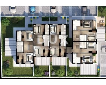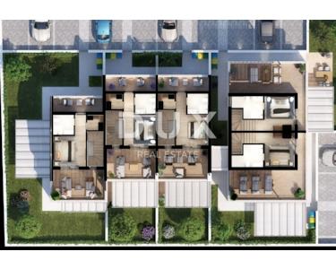 Poreč liegt an der Westküste der Halbinsel Istrien. Aufgrund des mediterranen Klimas, der natürlichen Schönheit und des erhaltenen kulturellen Erbes ist es das ganze Jahr über ein idealer Aufenthaltsort. Die Stadt umfasst 53 umliegende Siedlungen, in denen es moderne Villen mit Schwimmbädern und Apartmentkomplexe gibt, während im Zentrum eine Vielzahl von Apartments und Wohnungen zum Verkauf stehen, von rustikalen Steinhäusern bis hin zu luxuriösen Neubauten. An einem ruhigen Ort, 1 km von der Stadt Poreč und 2 km vom Meer entfernt, steht dieses moderne Reihenhaus mit Garten zum Verkauf. Haus 3 ist das dritte in Folge und die Fläche des Hauses beträgt 128 m2, verteilt auf drei Etagen und verfügt über einen Garten von 92 m2. Das Erdgeschoss des Hauses besteht aus einer Eingangshalle mit Garderobe, einem großzügigen Wohnbereich bestehend aus Küche, Esszimmer und Wohnzimmer, einer Waschküche, einem Technikraum und einer Toilette. Vom Wohnzimmer aus gelangt man durch die Glaswände auf die überdachte Terrasse, die zum Garten führt. Eine elegante Treppe führt in die zweite Etage, wo sich zwei geräumige Schlafzimmer mit eigenem Bad und ein Schlafzimmer mit eigenem Kleiderschrank befinden. Im dritten Stock des Hauses befindet sich ein weiteres Schlafzimmer mit Bad, das Zugang zu einer großzügigen Terrasse hat, die teilweise überdacht sein wird. Die Beheizung des Hauses erfolgt durch eine Fußbodenheizung mit Wärmepumpe und Klimaanlagen, die auch zur Kühlung des Hauses dienen. Alle lebensnotwendigen Einrichtungen befinden sich in unmittelbarer Nähe. Der Preis bezieht sich auf ein fertiges Haus nach dem „schlüsselfertigen“ System. Die Immobilie ist im Mehrwertsteuersystem enthalten und der Preis mit Mehrwertsteuer ist angegeben.