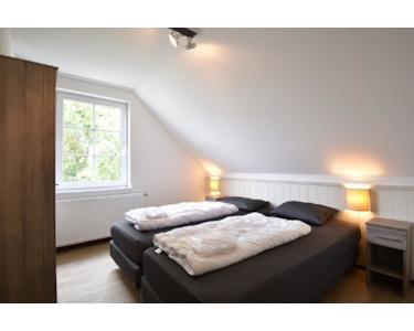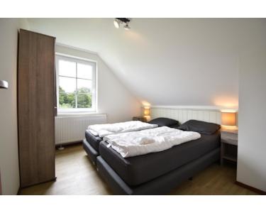 Das vierte Schlafzimmer hat 2 Boxspringbetten und einen Kleiderschrank.