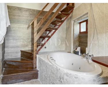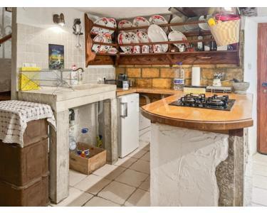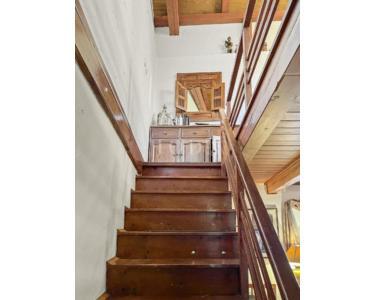 Im Erdgeschoss des Hauses befinden sich eine Küche und ein kleiner Abstellraum. Eine Treppe führt in den ersten Stock, wo sich das Wohnzimmer mit Zugang zur ersten Terrasse und ein Schlafzimmer befinden. Vom Wohnzimmer führt eine Treppe zum Badezimmer, während eine weitere Treppe in die zweite Etage führt, wo sich ein Schlafzimmer mit Zugang zur zweiten Terrasse mit Meerblick befinden.