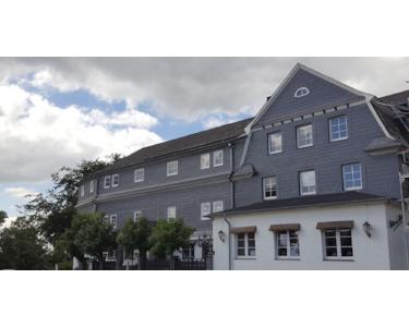 Die ebenfalls neu verschieferte Fassade des Hauses im sauerländer Stil verleiht dem Gebäude einen besonderen Charme.
