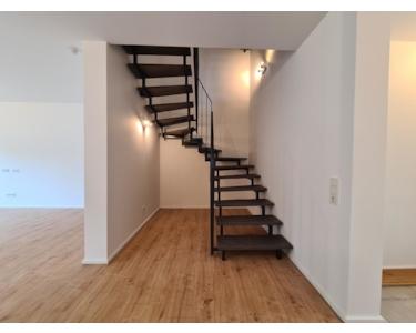 - Innentreppe: Stahltreppe mit massiven und modernen Holzstufen aus Eiche