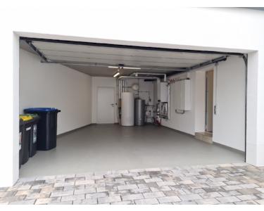 Zu dem Haus gehört eine große linksseitig angebaute Garage mit elektrischem Torantrieb und direktem Zugang ins Haus; vor der Garage steht ein zusätzlicher Autostellplatz zur Verfügung.