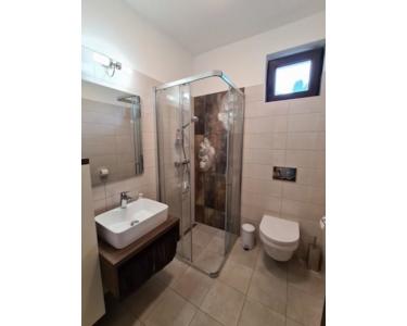 Die moderne Ausstattung des Hauses umfasst hochwertige Bodenbeläge, moderne Beleuchtung und zeitgemäße Badezimmerausstattung.