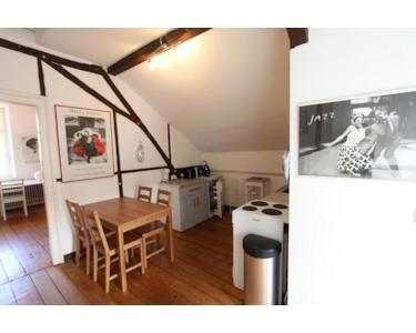 Hier fühlt man sich direkt wohl. Das Besondere an der Wohnung sind die Holzdielen und -balken, die wohnliche Wärme vermitteln.