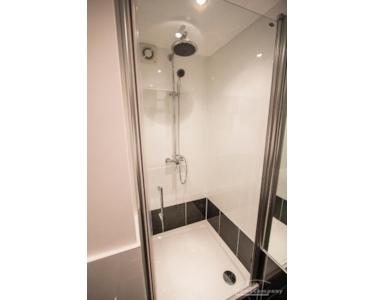 Das Badezimmer ist ein Platzwunder. Auf kleinstem Raum wurde ein schickes Duschbad gezaubert.