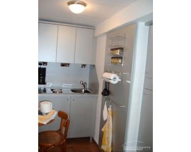In der Pantryküche sind Waschmaschine, Mikrowelle, Wasserkocher, Kaffeemaschine und alltägliche Utensilien (Besteck/Geschirr etc.) vorhanden. Außerdem ist das Apartment mit einem Esstisch, einem Fernsehgerät sowie einem gemütlichen Einzelbett ausgestattet.