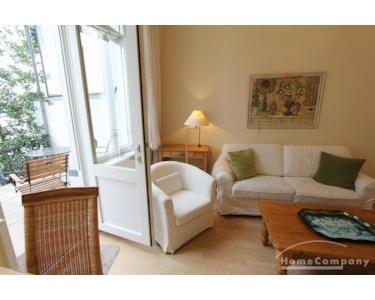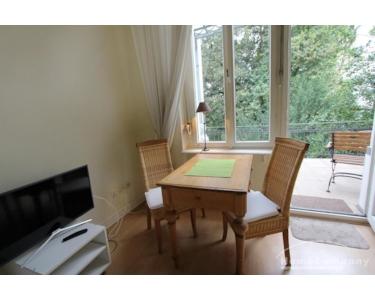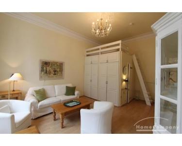Ein sehr gelungenes 1-Zimmer-Appartment im eleganten Landhausstil. Das Appartment ist in einem wunderbaren alten Haus mit hohen Decken gelegen. Ein absolutes Raumwunder. Ein Wohn-Schlafbereich mit clever versteckter Pantryküche: