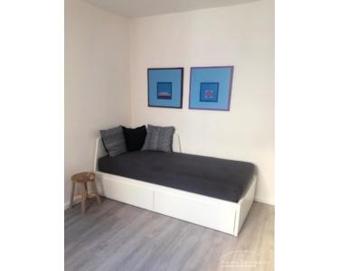 Im Wohn-Schlafraum stehen ein gemütliches Einzelbett (welches bei Bedarf zu einem Doppelbett ausziehbar ist), ein Schreibtisch und ein Sofa zur Verfügung.