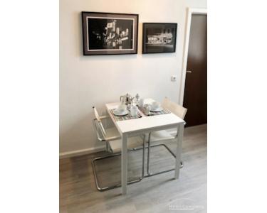 Das Tageslicht-Badezimmer mit Dusche und Handtuch-Heizkörper rundet das Angebot ab, welches einfach perfekt für diejenigen sind, die ein möbliertes Apartment zur Zwischenlösung suchen.