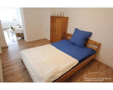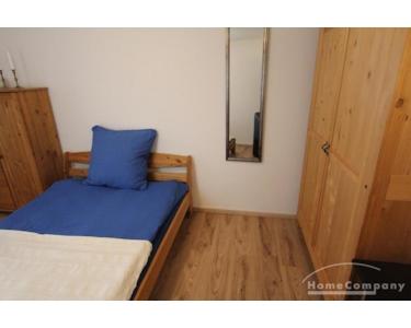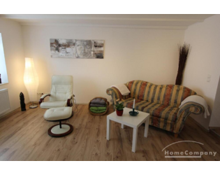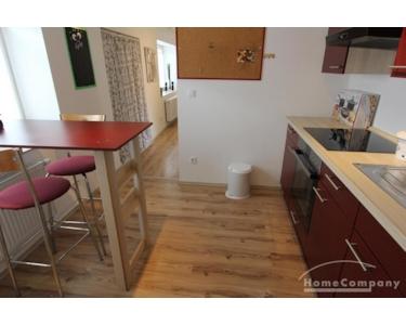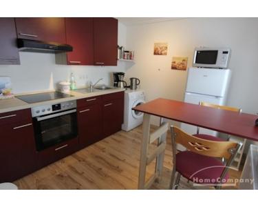 Liebevoll eingerichtete 2-Zimmer-Wohnung, die Gemütlichkeit ausstrahlt, im Schlafbereich finden ein Doppelbett und ein Schreibtisch Platz, generell viel Stauraum dank eines großen Kleiderschrankes, Massagesessel und Sofa im Wohnbereich. Moderne und in rot gehaltene Einbauküche mit Waschmaschine, Bistrotisch und Mikrowelle. Top saniertes Badezimmer mit Dusche.