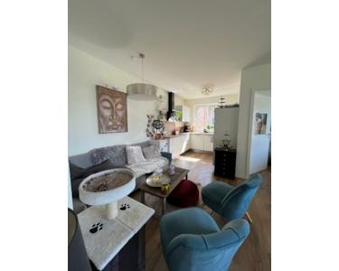 Die Aufteilung umfasst einen einladenden Flur, ein Gäste-WC, ein modernes Badezimmer mit Dusche und hochwertigem Glas-Spritzschutz, ein geräumiges Schlafzimmer, ein großzügiges Wohn- und Esszimmer mit direktem Zugang zur Terrasse, eine separate Küche inklusive moderner Einbauküche sowie einen vielseitig nutzbaren Allzweckraum. Ein praktischer Abstellraum innerhalb der Wohnung bietet zusätzlichen Stauraum.