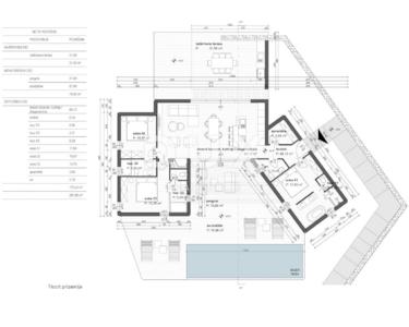 Die Villa ist ein Erdgeschoss mit einem einzigartigen, modernen Design und befindet sich auf einem Grundstück von 700 m2. Es besteht aus drei Schlafzimmern mit jeweils eigenem Bad, großem Wohnzimmer, Esszimmer und Küche, Flur, Abstellraum und Toilette. Es hat eine große überdachte Terrasse (31,5 m2) und einen Swimmingpool (30 m2) mit Sonnendeck und Pergola. Das Haus ist nach Süden ausgerichtet und befindet sich in ruhiger Lage neben der Grünzone und doch nur 1 km vom Meer entfernt. Das Haus wird mit Top-Ausstattung und Keramik ausgestattet, mit eingebauter Fußbodenheizung und angelegtem Garten im mediterranen Stil. In dieser Phase kann der zukünftige Eigentümer ein Heimgerät gemäß dem Kostenvoranschlag auswählen.