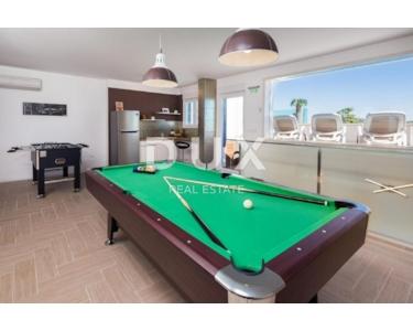 Schöne Luxusvilla zum Verkauf in Rogoznica in der Nähe von Šibenik in Norddalmatien. Dieses luxuriöse Gebäude, dessen Blick auf das kristallklare Meer Ihnen sicherlich den Atem rauben wird, hat eine Gesamtfläche von 380 m2 und wurde auf einem Grundstück von 449 m2 errichtet. Es besteht aus einem geräumigen Wohnzimmer, einer modernen Küche und einem Esszimmer, fünf Schlafzimmern mit angeschlossenen Badezimmern und drei separaten Toiletten. Die Villa verfügt außerdem über ein Spielzimmer mit Billard, Tischfußball und Darts. Für vollkommene Entspannungsmomente steht Ihnen auch eine finnische Sauna zur Verfügung. Auf der Dachterrasse der Villa befindet sich ein wunderschöner Infinity-Pool ausgestattet mit einem eingebauten Whirlpool, von dem aus sich der Blick bis zum endlosen Blau der Adria erstreckt. Im umzäunten Hof der Villa stehen auch private Parkplätze zur Verfügung. Die Villa ist nur 50 m vom Strand entfernt und die große Anzahl unberührter Strände, die die Stadt Rogoznica bietet, erstreckt sich über bis zu 50 km des Küstengebiets. Rogoznica ist bekannt für den Yachthafen Frapa, ein Yachtparadies, und einer der interessantesten Orte in Rogoznica ist sicherlich das Drachenauge, ein natürlicher Salzsee auf der Halbinsel Gradina neben dem Yachthafen Frapa. Darüber hinaus gibt es in der Umgebung mehrere Nationalparks und Naturparks. In unmittelbarer Nähe von Rogoznica liegt beispielsweise der Nationalpark Kornati, auch Perle der Adria genannt. Die Stadt Šibenik, deren malerische Gassen an das Mittelmeer von früher erinnern, liegt 35 km nördlich. 50 km südlich liegt die Stadt Split, das kulturelle und administrative Zentrum Mitteldalmatiens.