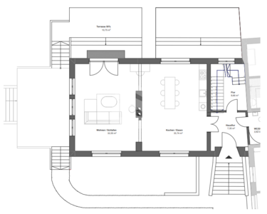 Gartengeschoss mit 106 m² mit separatem Zugang und Terrassen
