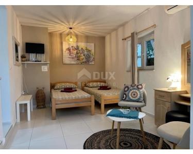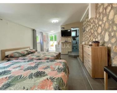 Wir verkaufen dieses schöne Apartmenthaus auf einem Grundstück von 1270 m2, in guter Lage im Zentrum von Novalja, nur 300 Meter vom Meer entfernt. Das Haus ist in ein Erdgeschoss und ein Obergeschoss mit dazugehörigem Nebengebäude aufgeteilt, in dem sich zwei Studio-Apartments mit jeweils eigener Terrasse und separatem Eingang befinden. Im Haupthaus verfügen wir über drei Wohnungen, von denen sich zwei im Erdgeschoss befinden, während wir im ersten Stock des Hauses eine Dreizimmerwohnung mit großzügiger Terrasse haben. Im weitläufigen und gepflegten Garten stehen 7 Olivenbäume, vier Mandelbäume und viele mediterrane Pflanzen. Wir haben Parkplätze für acht Autos im Garten. Eine ausgezeichnete Immobilie, eine ideale Investition für eine touristische Vermietung, bei der die Belegung während der gesamten Saison garantiert ist.