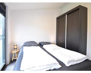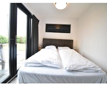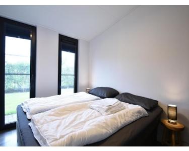 Wahnsinnig schickes Schlafzimmer mit einer Schiebetür zur Terrasse. Wunderbares Licht und ein großer Kleiderschrank.