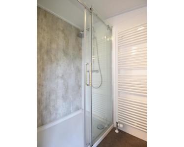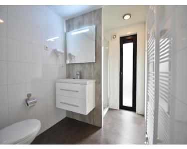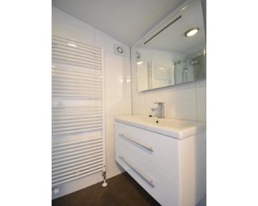 Wie bereits erwähnt, ist dieses Badezimmer mit Schlafzimmer 2 verbunden. Hier finden wir eine schöne Dusche mit großem Duschkopf, ein Waschbecken mit Unterschrank und einen Design-Heizkörper. Schön, um Ihr Handtuch aufzuhängen.