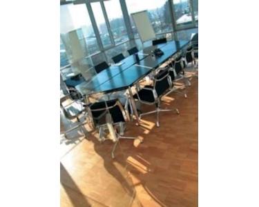 Die Ausstattung der Büros wird höchsten Ansprüchen gerecht und umfasst u.a. eine mieterspezifische Aufteilung, Kühldecken, bodentiefe Fenster, Hohlraumboden, außen liegenden Sonnenschutz und eingerichtete Teeküchen. Bei Bedarf lassen sich großflächige zusammenhängende Einheiten darstellen. Raumtiefe 5,50 m, Achsmass 1,38 m .