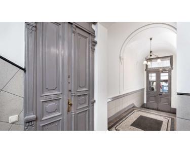 Um einen ruhigen und begrünten Innenhof erstrecken sich in dem Projekt ++Helmholtz 3++ mit dem viergeschossigen, voll unterkellerten Vorderhaus und Seitenflügel sowie der zweigeschossigen Remise zwei gepflegte Altbauten aus der Jahrhundertwende. Der beeindruckende Eingangsbereich des Hauptgebäudes empfängt die Bewohner mit klassischen Stuckelementen, Terrazzoboden und originalen Holztüren. Auf das in Massivbauweise errichtete und mit Holzfenstern ausgestattete Mehrfamilienhaus verteilen sich insgesamt acht zum Teil zusammengelegte, vermietete Einheiten mit ca. 66 m² bis ca. 140 m² Wohnfläche. Die gepflegten 2- bis 4-Zimmer-Wohnungen verfügen alle über Tageslichtbäder und Terrassen oder Balkone. Das bezugsfreie, renovierte 1-Zimmer-Apartment in der mit Klinkersteinen verkleideten Remise ergänzt das Angebot. Es stehen zusätzlich 17 PKW-Garagen zum Verkauf.