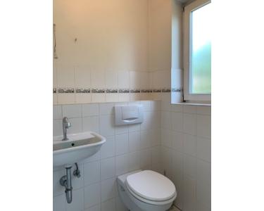 vom Eingangsbereich aus gelangt man linksseitig in die Küche. Im Flur rechts befindet sich ein Gäste-WC mit Tageslichtfenster.