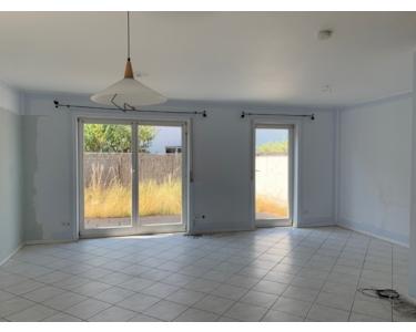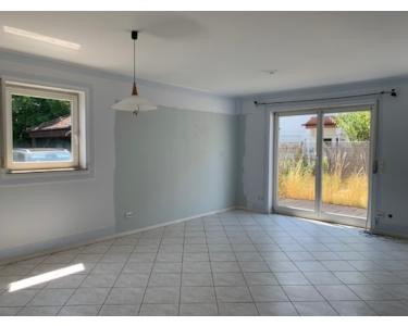 Vom Wohnzimmer hat man Zugang auf die Terrasse und in den kleinen Garten. Die Terrasse ist mit einem Seitentor ausgestattet.