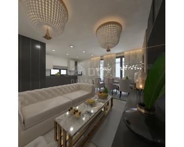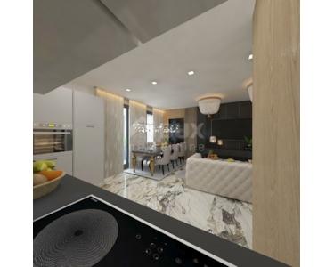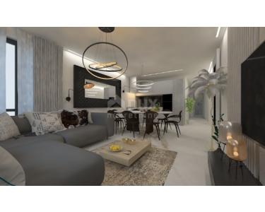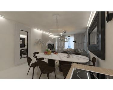 Die Wohnung im ersten Stock mit einer Fläche von 73,45 m2 besteht aus einem Wohnzimmer, einer offenen Küche und einem Esszimmer, zwei Schlafzimmern und zwei Badezimmern. Die Wohnung verfügt über eine Terrasse von 9,99 m2 und einen Parkplatz in der Garage.
