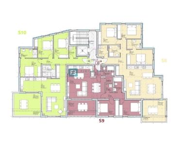 Die Wohnung S8 mit einer Gesamtnutzfläche von 117,72 m² befindet sich im 2. Obergeschoss und ist nach Südosten ausgerichtet. Sie besteht aus einem Eingangsbereich, einem Wasch-/Abstellraum, drei Schlafzimmern, einem Flur, zwei Bädern, einer Küche mit Esszimmer und einem Wohnbereich mit Zugang zu einer großzügigen, überdachten Terrasse von 16,90 m² mit Panoramablick auf das Meer. Zur Wohnung gehören ein Abstellraum im Untergeschoss und ein Außenstellplatz.