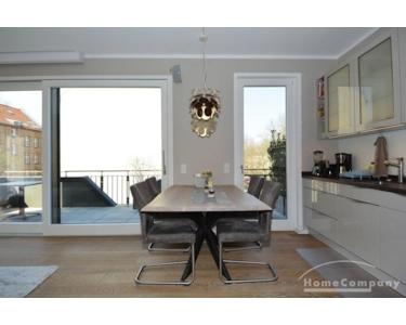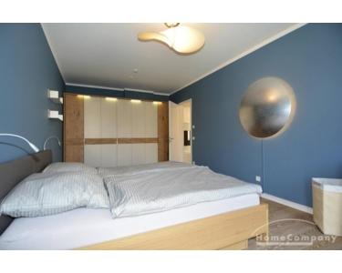 Geräumige, möblierte Drei-Zimmer-Wohnung auf etwa 98 Quadratmetern, mit bodentiefen Fenstern und 14 Quadratmeter-Balkon auf der Westseite. Die Wohnung ist sehr hochwertig eingerichtet und bietet eine große Designerwohnküche mit Geschirrspüler, integriertem Ofen und Mikrowelle, großem Kühlschrank, viel Stauraum. Es gibt eine Heimkinoanlage mit UHD/4K-Beamer und automatisch runterfahrbarer Leinwand (2,30 x 1,30 Meter), vier Dolby Surround-Lautsprechern, Subwoofer und Marantz-Receiver. Zur Ausstattung gehören außerdem Kabelanschluss, High-Speed Glasfaser-Internet (bis zu 400 mbit Internet Upgrade), elektrische Rollos. Master-Bedroom mit Doppelbett. Gästeschlafzimmer mit Schlafcouch.